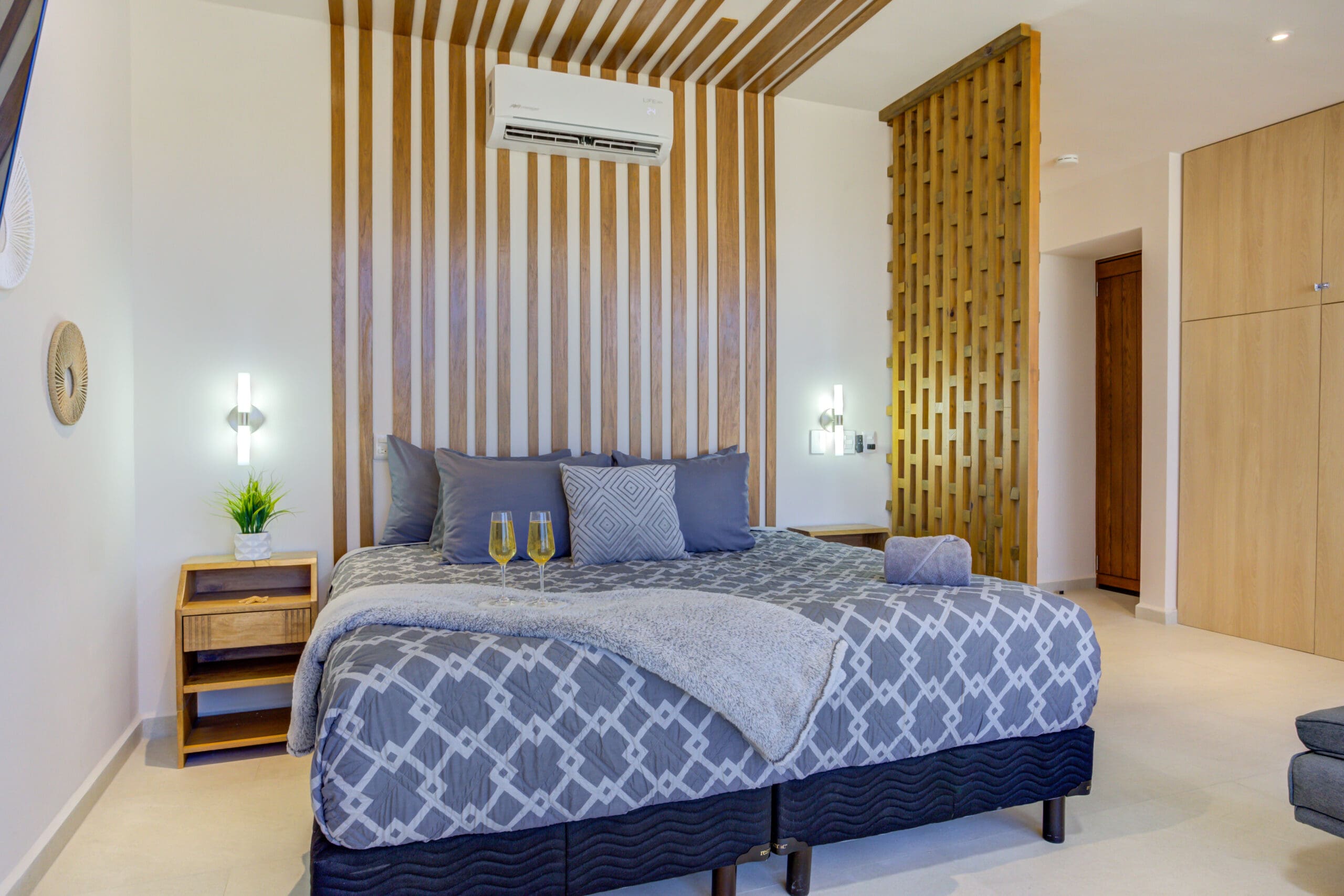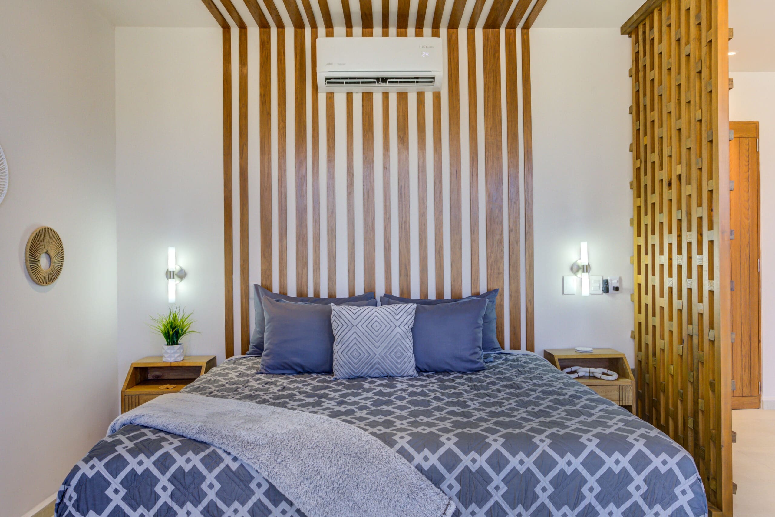 Relájese en la acogedora piscina de inmersión y disfrute de noches de descanso en la lujosa cama tamaño king. Mejore su estadía con un auto de alquiler opcional, perfecto para explorar Bahía de Banderas y las atracciones cercanas. Ideal para una escapada tranquila y memorable.